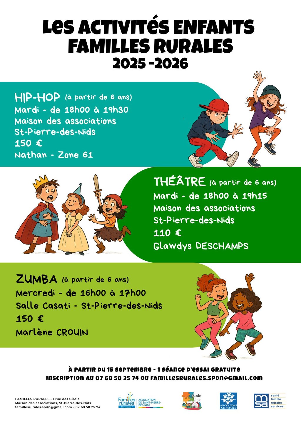 Inscriptions au 𝟬𝟳 𝟲𝟴 𝟱𝟬 𝟮𝟱 𝟳𝟰 ou par mail : 𝗳𝗮𝗺𝗶𝗹𝗹𝗲𝘀𝗿𝘂𝗿𝗮𝗹𝗲𝘀.𝘀𝗽𝗱𝗻@𝗴𝗺𝗮𝗶𝗹.𝗰𝗼𝗺